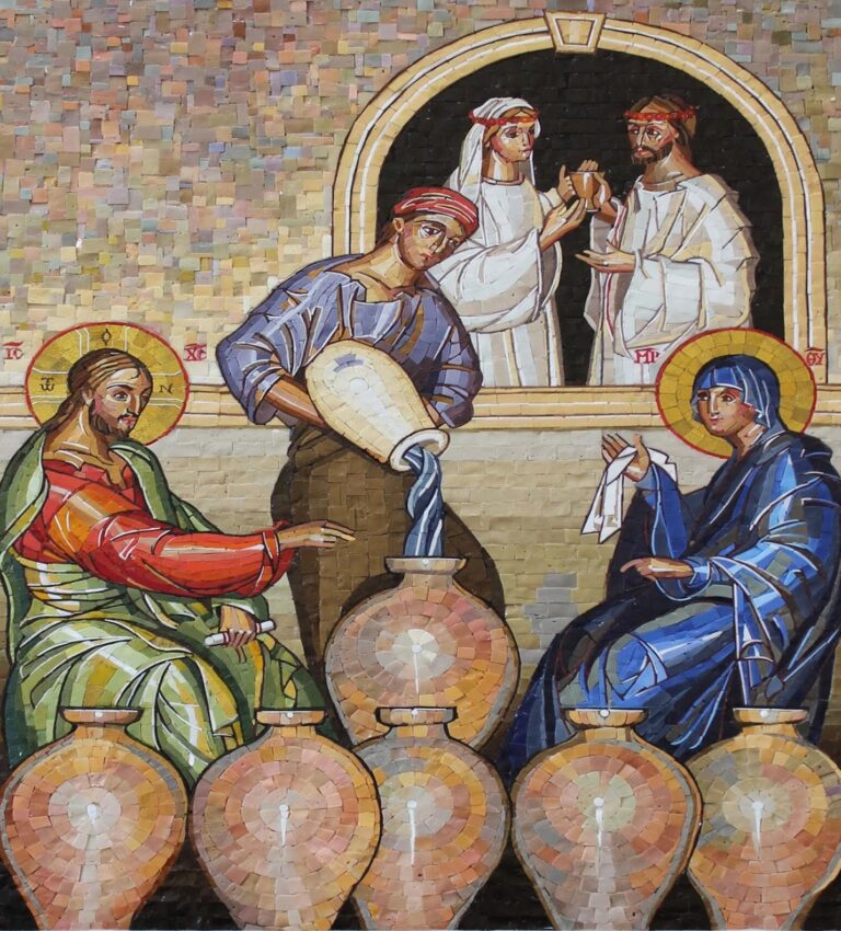 In quel tempo. Vi fu una festa di nozze a Cana di Galilea e c’era la madre di Gesù. Fu invitato alle nozze anche Gesù con i suoi discepoli. Venuto a mancare il vino, la madre di Gesù gli disse: «Non hanno vino». E Gesù le rispose: «Donna, che vuoi da me? Non è ancora giunta la mia ora». Sua madre disse ai servitori: «Qualsiasi cosa vi dica, fatela». Vi erano là sei anfore di pietra per la purificazione rituale dei Giudei, contenenti ciascuna da ottanta a centoventi litri. E Gesù disse loro: «Riempite d’acqua le anfore»; e le riempirono fino all’orlo. Disse loro di nuovo: «Ora prendetene e portatene a colui che dirige il banchetto». Ed essi gliene portarono. Come ebbe assaggiato l’acqua diventata vino, colui che dirigeva il banchetto – il quale non sapeva da dove venisse, ma lo sapevano i servitori che avevano preso l’acqua – chiamò lo sposo e gli disse: «Tutti mettono in tavola il vino buono all’inizio e, quando si è già bevuto molto, quello meno buono. Tu invece hai tenuto da parte il vino buono finora». Questo, a Cana di Galilea, fu l’inizio dei segni compiuti da Gesù; egli manifestò la sua gloria e i suoi discepoli credettero in lui.